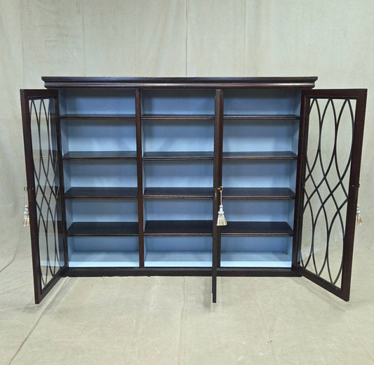 Vintage English Mahogany Bookcase with Lattice Mullions and Adjustable Shelves