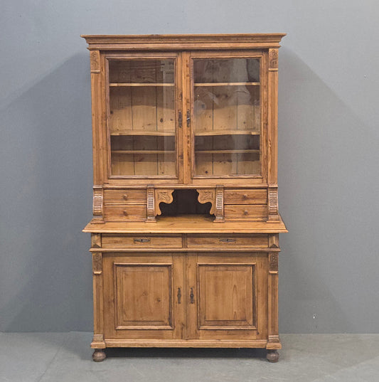 Antique French Provincial Pine Stepback China Cabinet Sideboard Hutch
