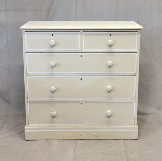 Antique 1920s English Dresser Chest of Drawers with Old Cream and White Paint