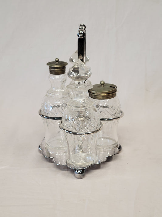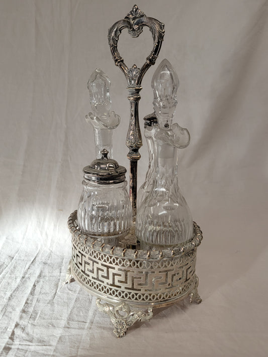 Antique Silverplate and Crystal Four Bottle Cruet Set