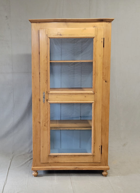 Antique German Pine Display Cabinet With Painted Blue Interior