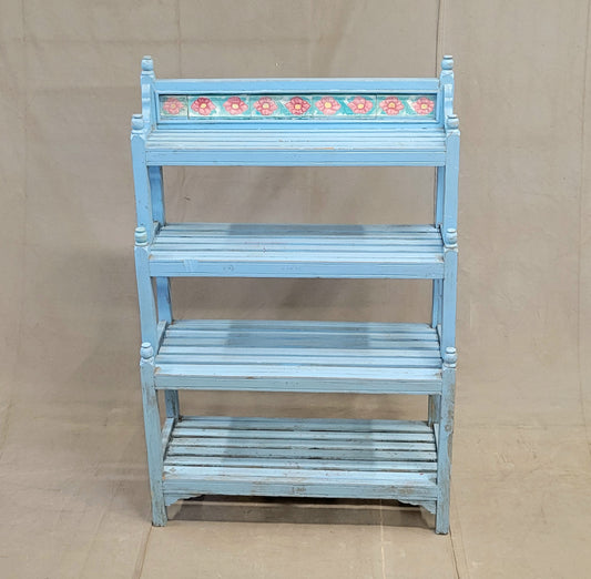Vintage Indian Painted Bookshelf with Floral Tile