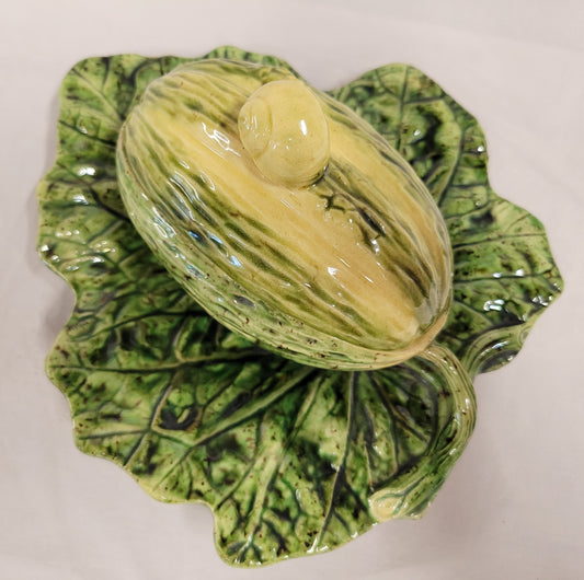 Antique Majolica Melon on Leaf Dish in the Style of Sarreguemines
