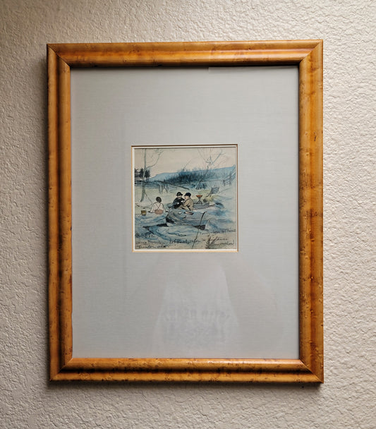 Antique 1880 Watercolor and Pencil Illustration of Trenton, Alabama, Campsite With Thornton Family