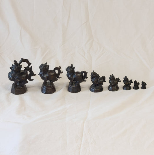 Set of 8 Antique Burmese Dragon Bronze Opium Weights