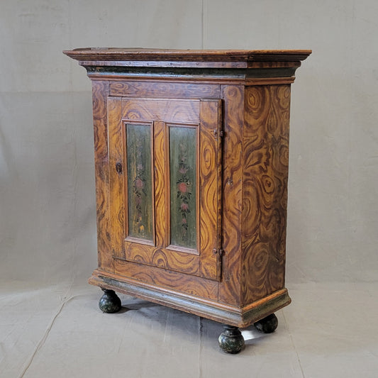 Antique 19th Century Austrian Pine Cupboard With Original Faux Bois Paint and Floral Accents