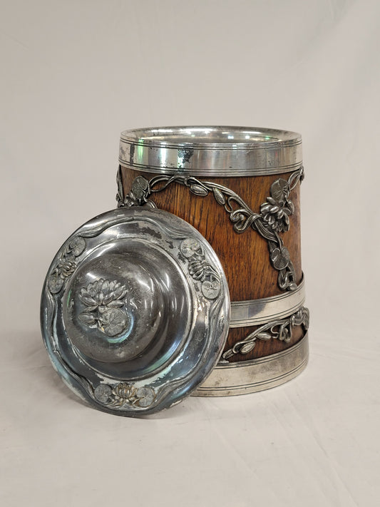 Antique Early 1900s Art Nouveau St. Louis Silver Co. Oak and Silver Ice Bucket