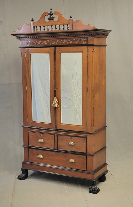 Antique Circa 1900 Anglo Indian Teak and Rosewood Mirrored Cabinet With Inlay