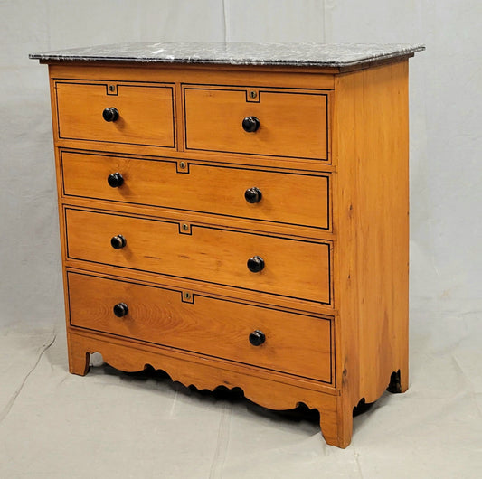 Antique English Pine Dresser With Painted French Line Motif and Marble Top