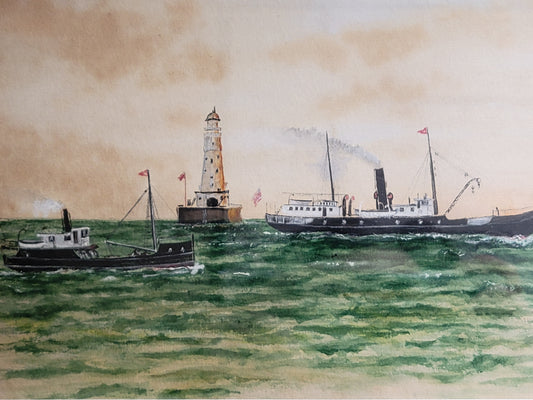 Antique Circa 1900 Gouache Maritime Painting of Steam Ship Fleet, by "Tully"