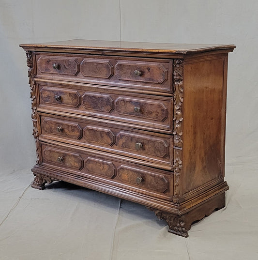 Antique 18th Century Italian (Bergamo, Lombardy) Burl Walnut Chest of Drawers