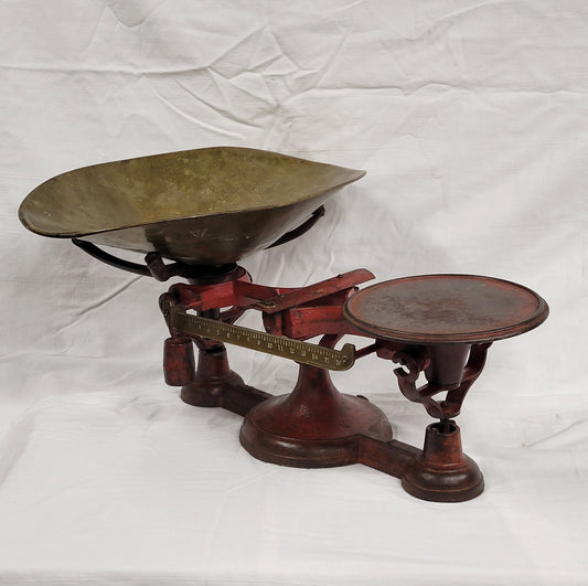 Antique 19th Century John Chatillon & Sons Painted Red Cast Iron and Brass Scale