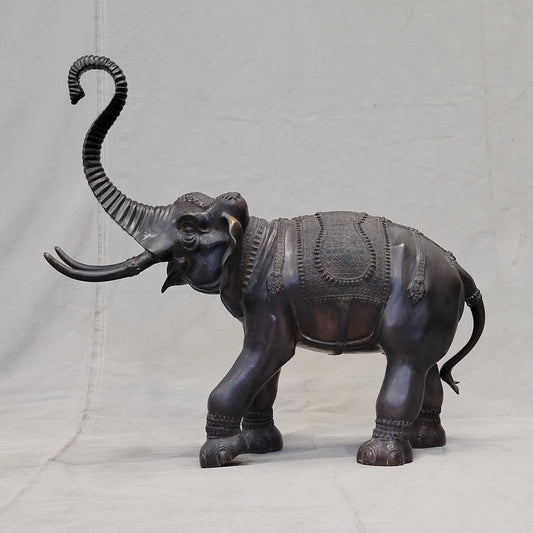 Vintage Large Patinated Brass or Bronze Asian Elephant Signed "La Puce"