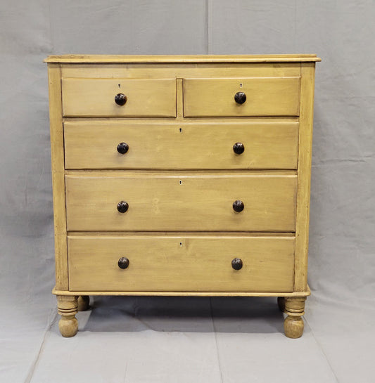 Antique English Edwardian Circa 1900 Painted Pine Dresser Chest of Drawers With Turned Feet
