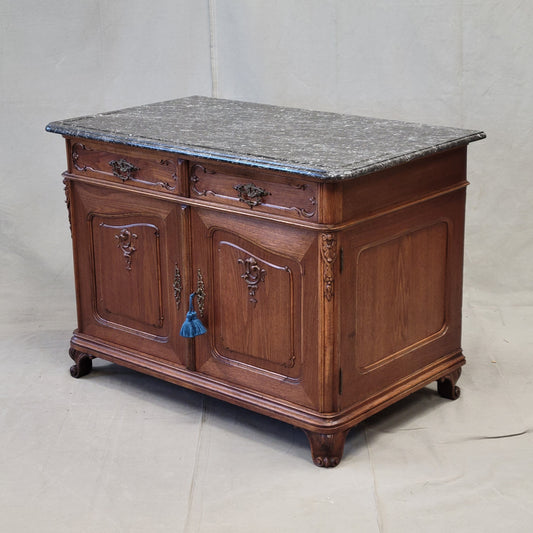 Antique Early 1900s Austrian Walnut Marble Top Sideboard Buffet