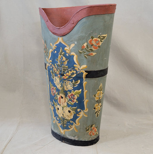 Vintage French Grape Hod Harvesting Bucket With Tole Paint Decoration