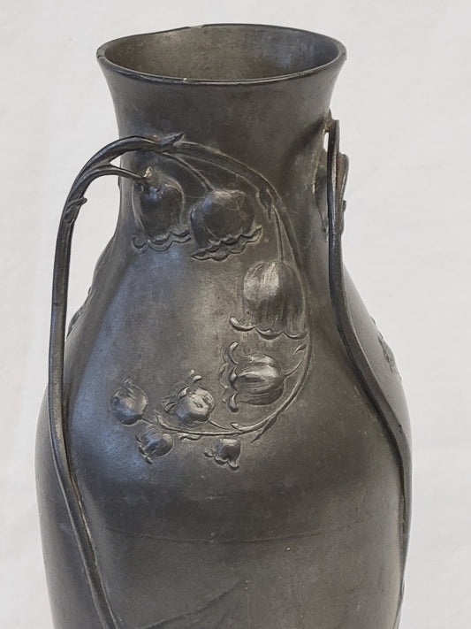 Antique Circa 1900 Art Nouveau Kayserzinn "4312" Pewter Vase With Lilies