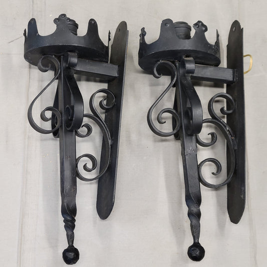 Vintage Spanish Revival Black Iron Wired Wall Sconces - a Pair