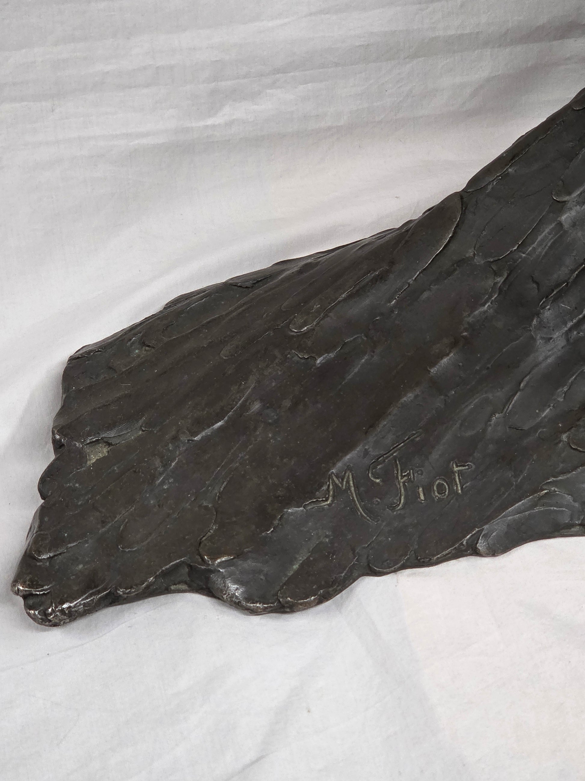 A stunning patinated bronze sculpture of an albatross in flight by French artist Maximilien Louis Fiot (1886-1953). On the front signed M. Fiot; on the back is the foundry marking, "Susse Fres, Paris" and "Cire Perdue". This sculpture is beautiful and interesting from all angles an could easily be mounted and viewed in the round, or simply from the front. This is a bronze cast sculpture and therefore very heavy... around 50 pounds and will ship via a white glove shipper.