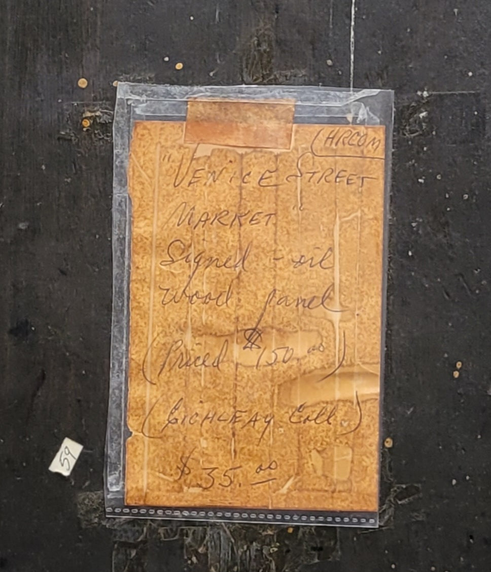 Condition commensurate with age and use. Scratches on the frame. There are tiny holds in corners of the wood panel. The painting is secure in the frame and ready to hang.